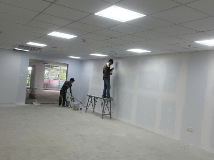 5. Thi công sơn: Sơn lót chống kiềm, tăng độ bám dính. -> Sơn 2-3 lớp phủ, đảm bảo đều màu. -> Dọn dẹp, nghiệm thu: Vệ sinh công trình, khách kiểm tra, bàn giao.