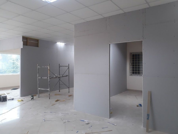 Thi công vách thạch cao văn phòng giá rẻ. Hiện nay nhiều công ty thuê mặt bằng mở văn phòng muốn ngăn phòng cho tiện làm việc. Việc lưạ chọn vât liệu tường thạch cao là tối ưu nhất. Vì sao chúng ta lại nói tối ưu nhất: